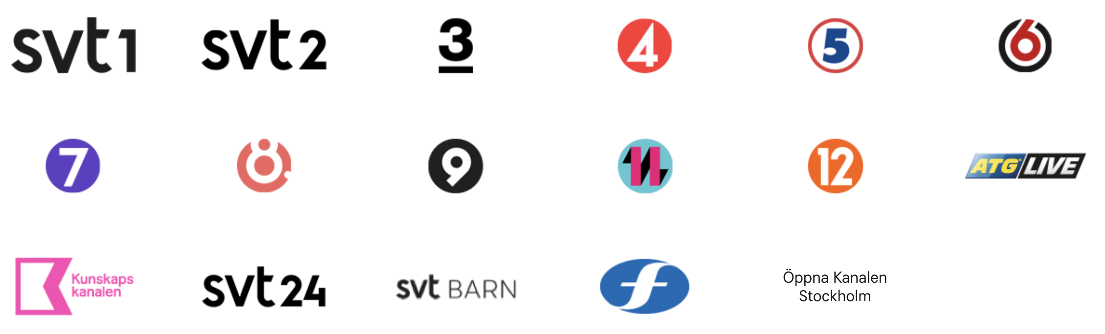 I månadsavgiften för lägenheten ingår ett digitalt grundutbud från Tele2 som innehåller följande kanaler: